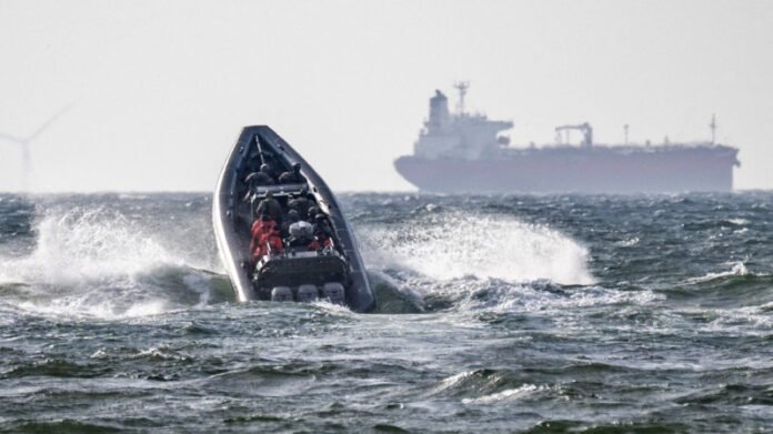 A Svéd Rendőrség Nemzeti Munkacsoportja és a Parti Őrség úton a Sea Owl I tankhajóhoz Trelleborg közelében, Svédországban, 2026. március 13-án. A skandináv ország blokkolja az orosz árnyékflottát.